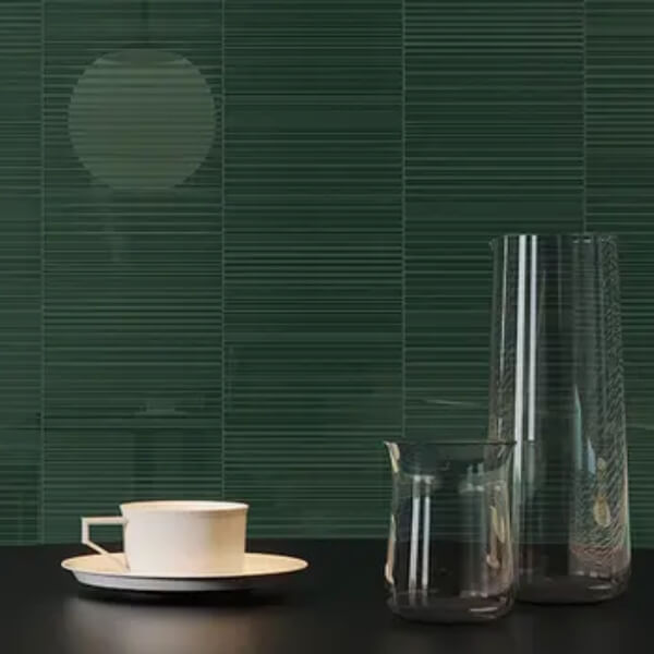 3 x 12 in / 7.5 x 30 cm Geometra Divide Emerald Glossy Pressed Tile