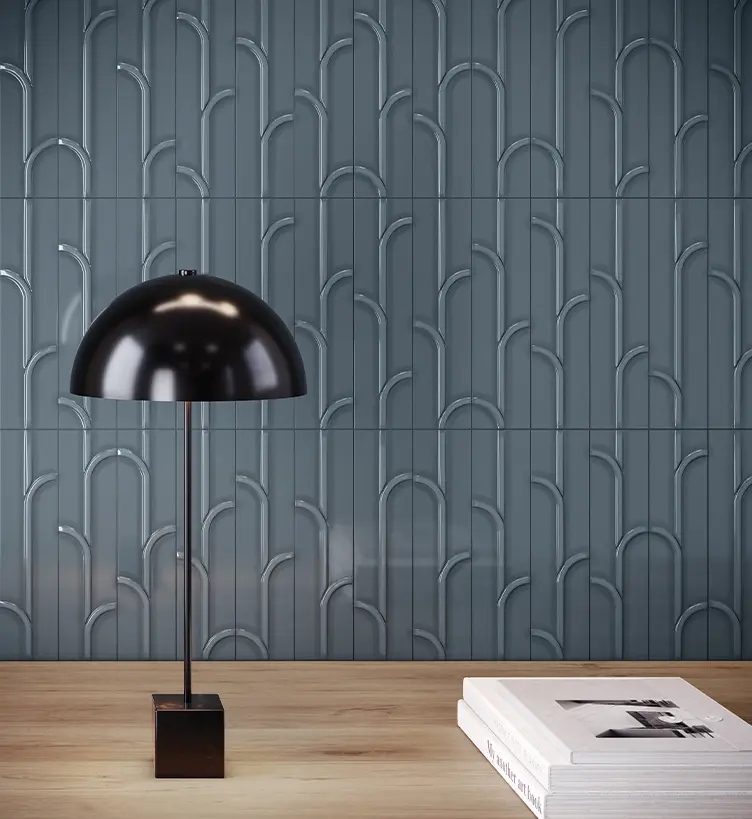 3 x 12 in / 7.5 x 30 cm Geometra Ivy Ink Glossy Pressed Tile
