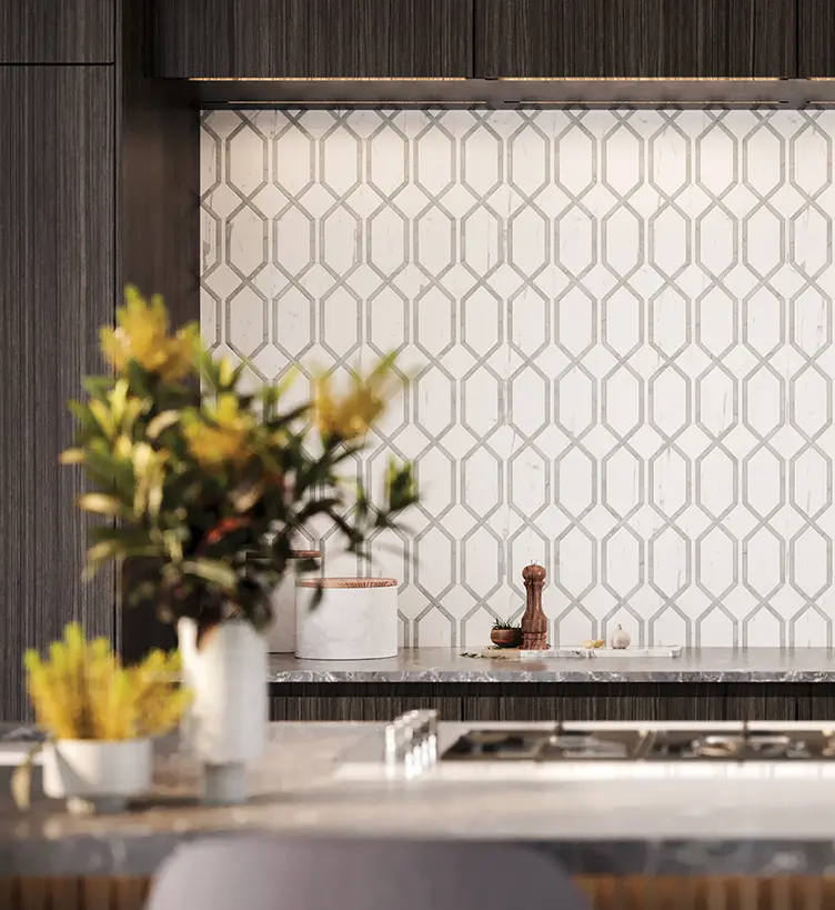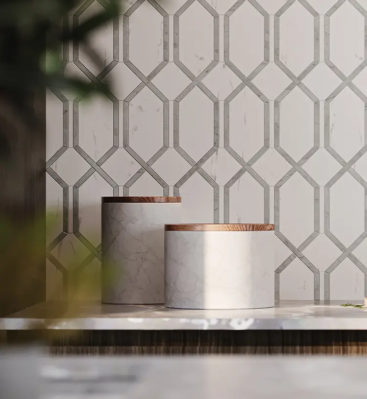 11 stunning formats: large, medium and small format rectified tiles, intricate mosaics, and a coordinating trim piece, resulting in the ultimate design definition.