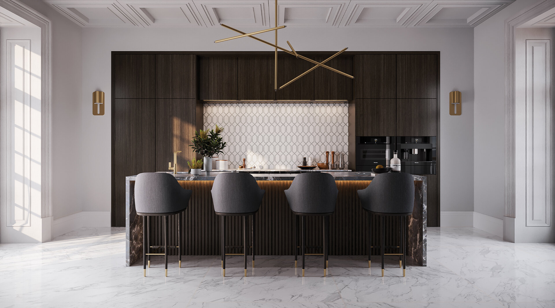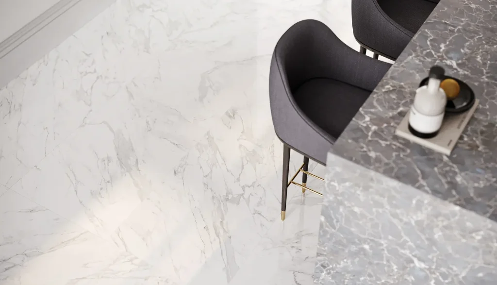 A delicate veining, that has the power to complement luxurious decors both within traditional or contemporary spaces. The natural elegance and nobleness of natural stone expressed in the utmost faithful reinterpretation in glazed porcelain by leveraging the best imaging and printing technology.