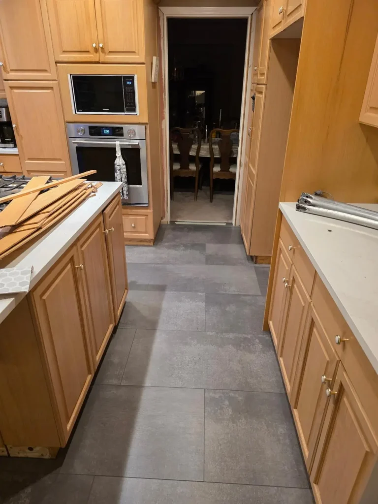 The result is a clean, modern kitchen floor that handles daily use while still looking beautiful year after year.
